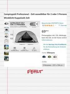 - Zelt ❌