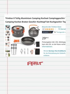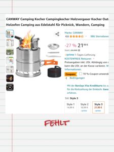 | Campingkocher (Feuer) Alternative Gaskocher (ca 30,-) | 22,- |